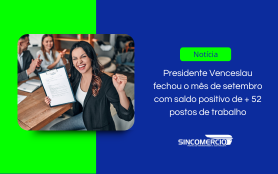 Notícias 30/11/2025 Presidente Venceslau fechou o mês de setembro com saldo positivo de + 52 postos de trabalho