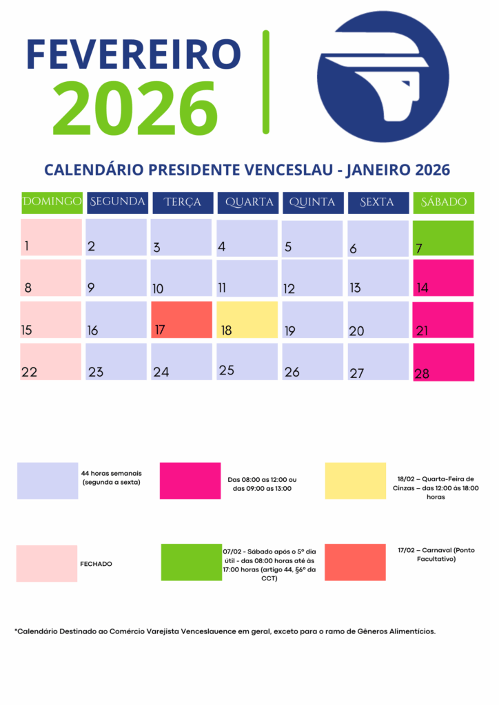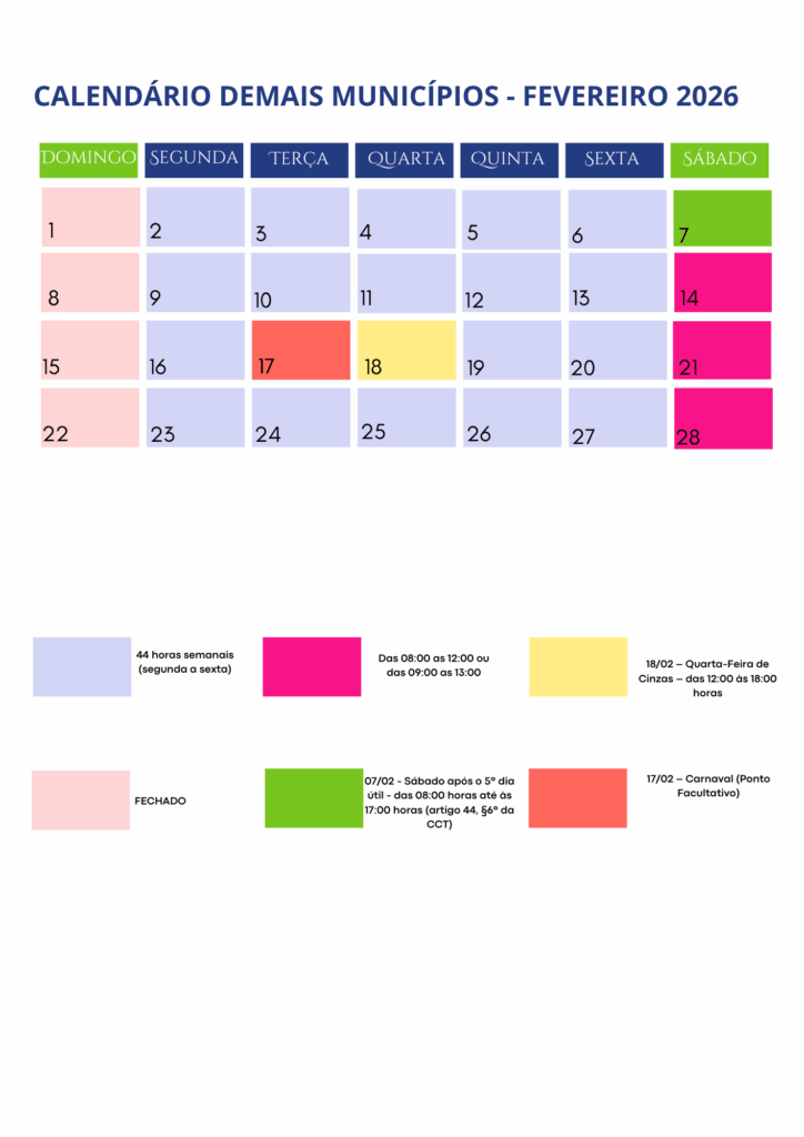 CALENDÁRIO FEVEREIRO 2026