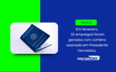 Trinta e dois empregos com carteira assinada foram gerados na economia de Presidente Venceslau no último mês de fevereiro,...