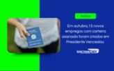 Em outubro,15 novos empregos com carteira assinada foram criados em Presidente Venceslau